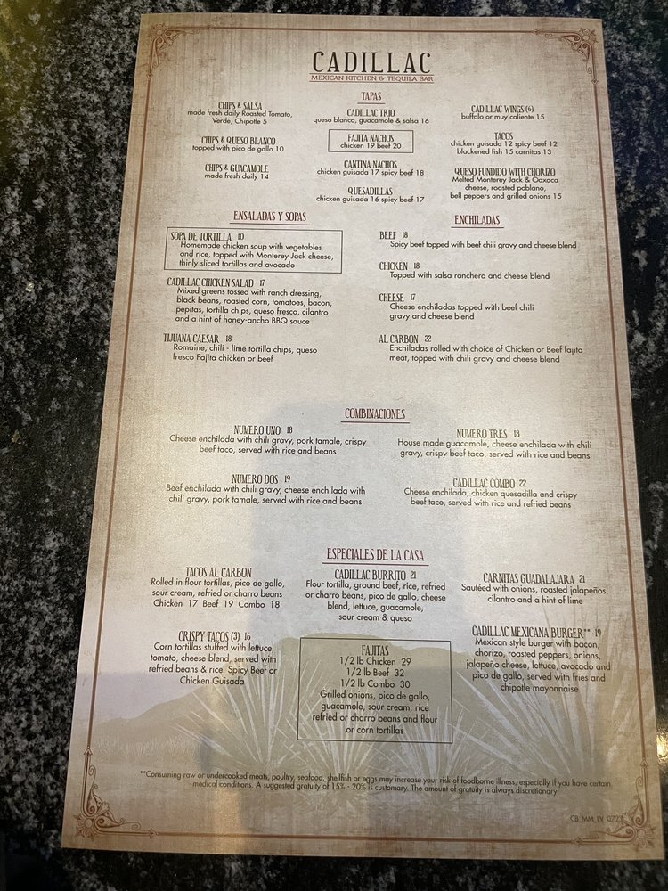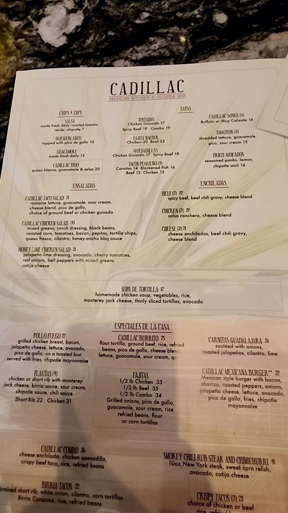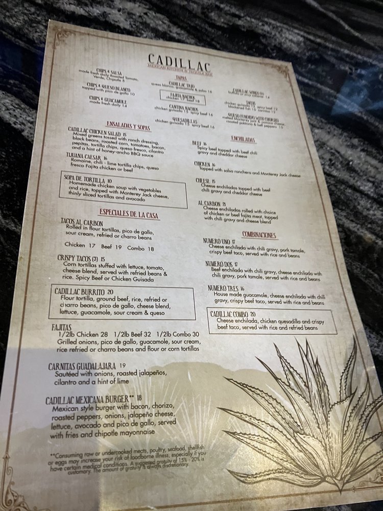 Cadillac Mexican Kitchen & Tequila Bar Menu (Update 2025)